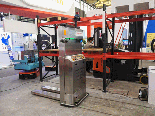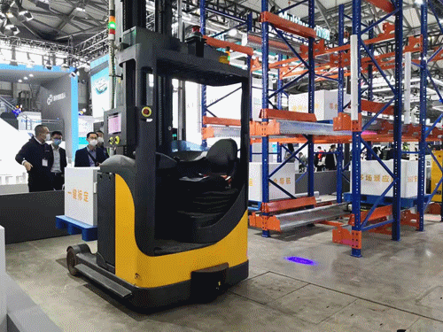 系列無人叉車產(chǎn)品,包括堆高式、平衡重式無人叉車等,并現(xiàn)場演示了月臺(tái)貨車裝卸方案。
