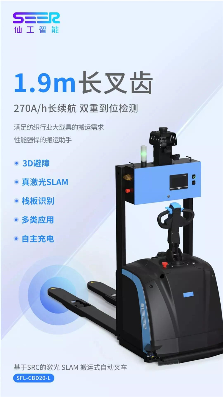 仙工智能——激光SLAM搬運式叉車SFL-CBD20-S、紡織行業專用自動叉車