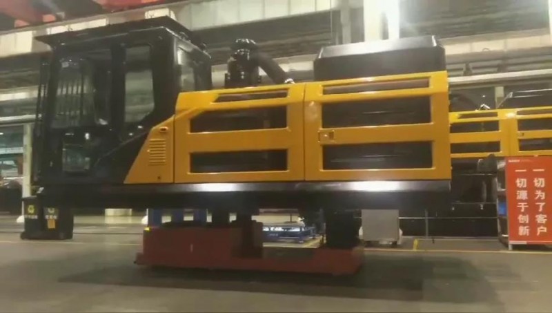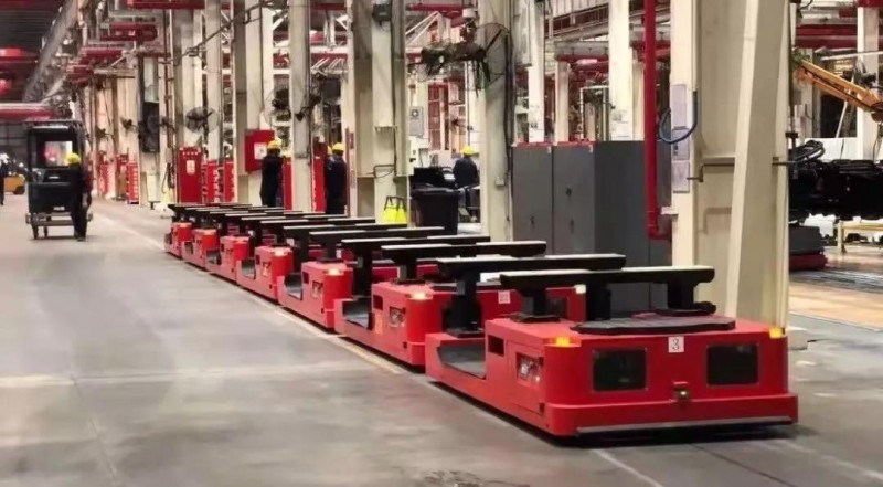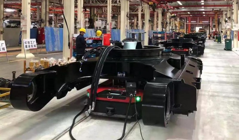 大挖工廠使用國(guó)自20噸重載AGV+30噸RGV,串聯(lián)起產(chǎn)線裝配工位,實(shí)現(xiàn)上線、下線全程智能化調(diào)度。