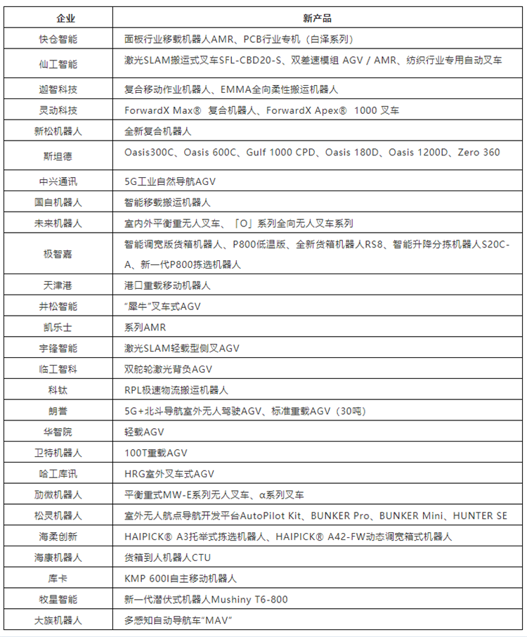 根據新戰略移動機器人產業研究所不完全統計,2021年,行業先后有27家企業推出了47款新產品,包括叉車、自然導航AGV、重載AGV、移動底盤以及各類行業專機等。