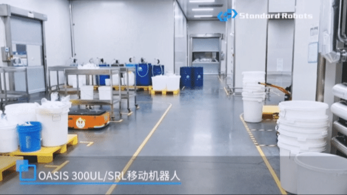 方案中,斯坦德移動(dòng)機(jī)器人OASIS 300UL/SRL負(fù)責(zé)執(zhí)行乳化車間、包材車間物料運(yùn)輸任務(wù),當(dāng)車間某一設(shè)備需要物料時(shí),由員工使用平板電腦發(fā)送用料需求,通過(guò)FMS調(diào)度系統(tǒng)呼叫OASIS 300UL/SRL前來(lái)運(yùn)輸物料。