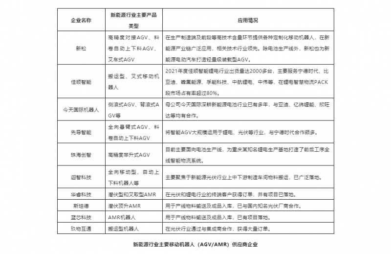 新松在2021依靠在前段工序積累的競爭優勢,2021年拿下了多個鋰電行業訂單;佳順智能作為最早進入鋰電行業的AGV企業之一,與多家鋰電企業建立了合作關系。據張金亮透露,當前佳順智能在新能源業務已占公司整體業務的40%,未來占比還將進一步提高。