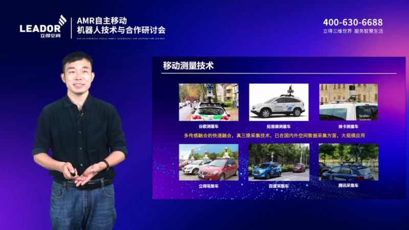 立得空間董事長郭晟在研討會上致辭并發(fā)表演講。他介紹說,“立得空間成立23年來基于移動測量、慣性導航、高精地圖、時空大數(shù)據(jù)等先進技術推動相關產(chǎn)業(yè)變革。近年來,立得空間與機器人廠商、OEM生態(tài)合作伙伴共同努力,在移動機器人領域獲得了新的突破。通過‘INS(慣性導航系統(tǒng))+SLAM’算法可以使機器人獲得高精度的定位和導航能力,通過“真圖”數(shù)字孿生工廠平臺,對機器人的運行進行模擬仿真,從而使其在實際投用后可以更精準、可靠地完成任務。智能物流、倉儲、安保、應急、特種行業(yè)的智能應用相繼落地。”