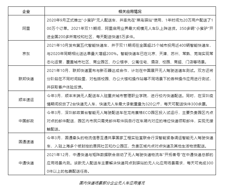 目前,無人配送市場經(jīng)過前期探索,主要有三大典型場景:快遞、外賣和商超零售。