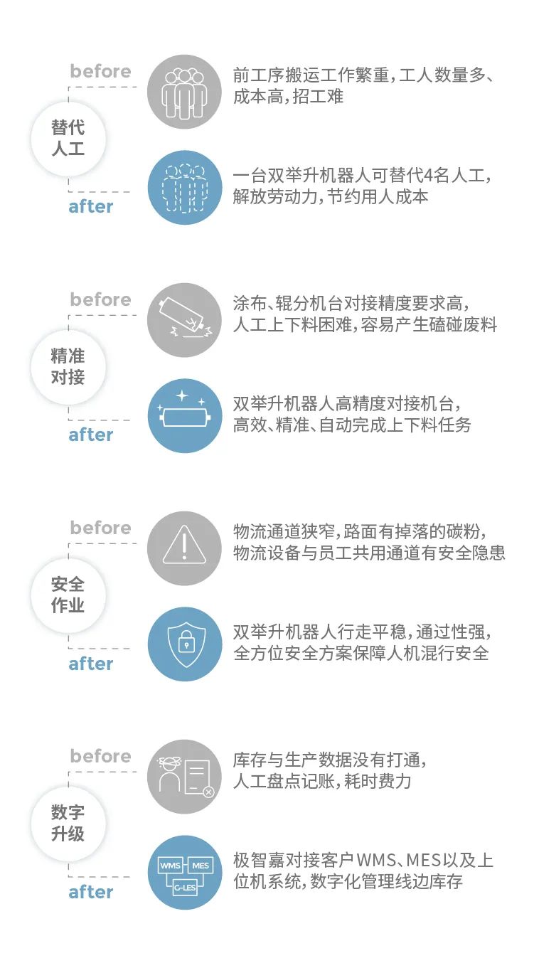 極智嘉雙舉升機器人得到了客戶的充分認可和項目實例驗證,為電芯前工序智能化升級提供了強力動能!